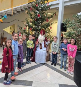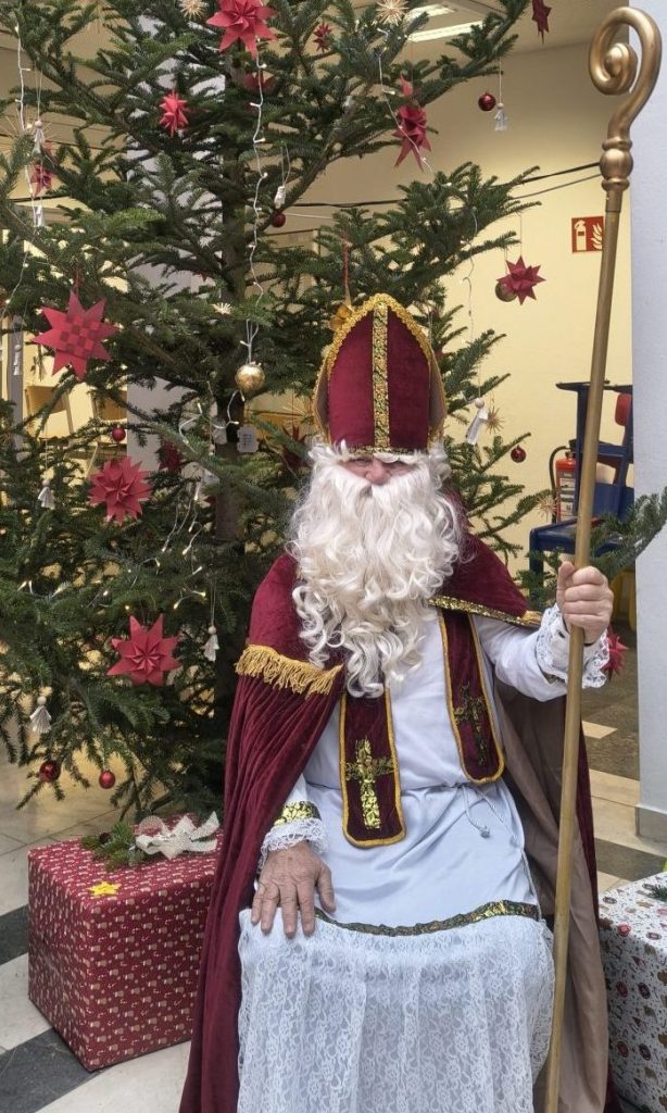 Gut vorbereitet mit ihren einstudierten Nikolausliedern und Gedichten, aber auch ziemlich aufgeregt warteten alle Kinder der 1. Klassen am Freitag, den 5. Dezember auf den heiligen Mann. Als er dann in die Aula unserer Schule kam, waren doch einige erschrocken und plötzlich ganz still. Der Nikolaus begrüßte die Kinder und erzählte viel Gutes. Jede 1. Klasse hatte einen Beitrag vorbereitet, den sie nun vortrug. Danach gab es für alle eine kleine Überraschung aus dem großen Nikolaussack. Aber auch alle anderen Klassen der Schule durften sich über ein Geschenk, das liebevoll von den Eltern des Elternbeirates verpackt worden war, freuen.